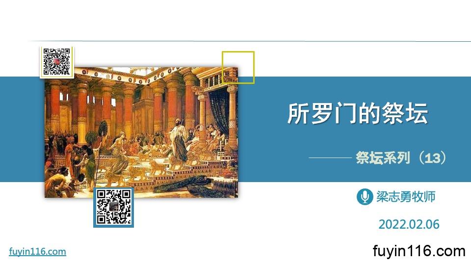 求主让每一个听众,从“所罗门的祭坛”中得重要的提醒,知道怎样成为一个尊贵的人、智慧的人、建殿的人,一个不被世界诱惑堕落的人。