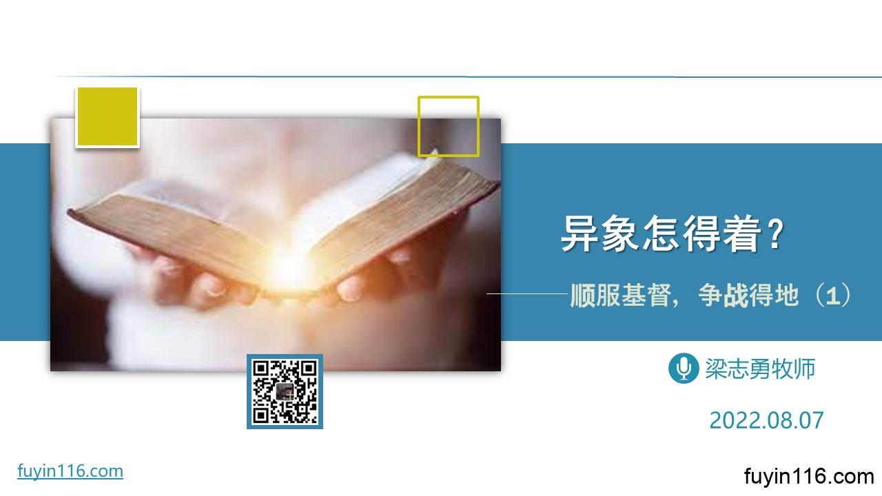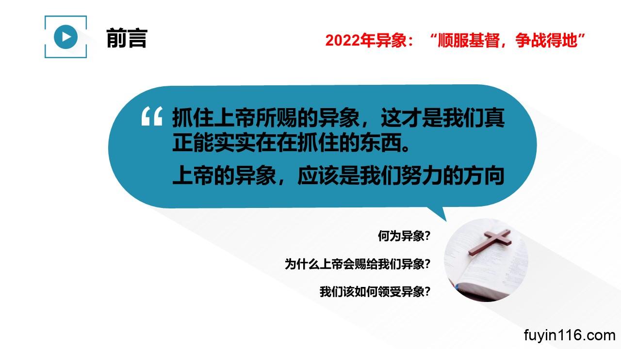 “顺 服 基 督,争 战 得 地”,是主赐给我们2022年的异象。