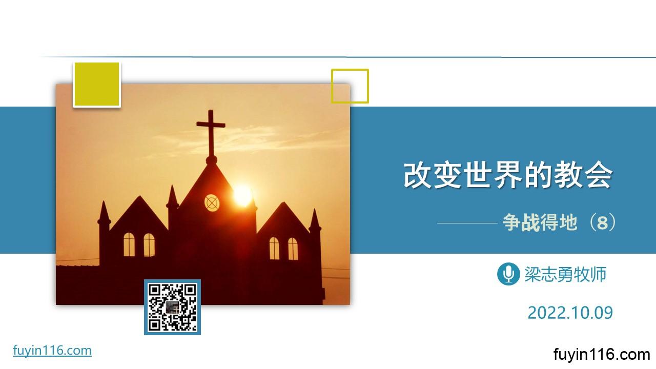 在10月09日,我们将进入《顺 服 基 督,争 战 得 地》系列的第08讲分享。