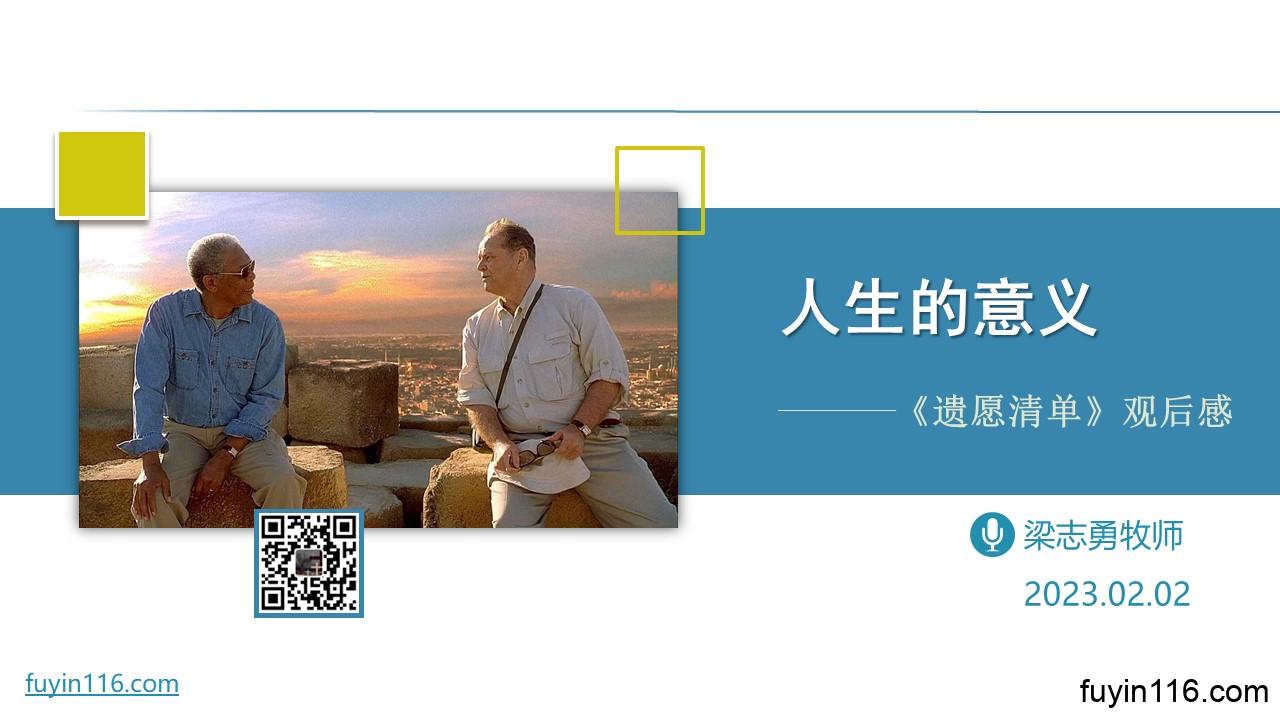 2)请你按照圣灵的感动带领,把我们的影评,发给你身边正在思考“人生的意义”,“生与死”等问题的朋友。