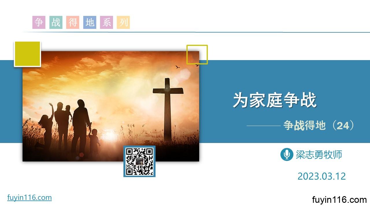 在3月12日,我们继续《争战得地》系列的分享,第24讲: