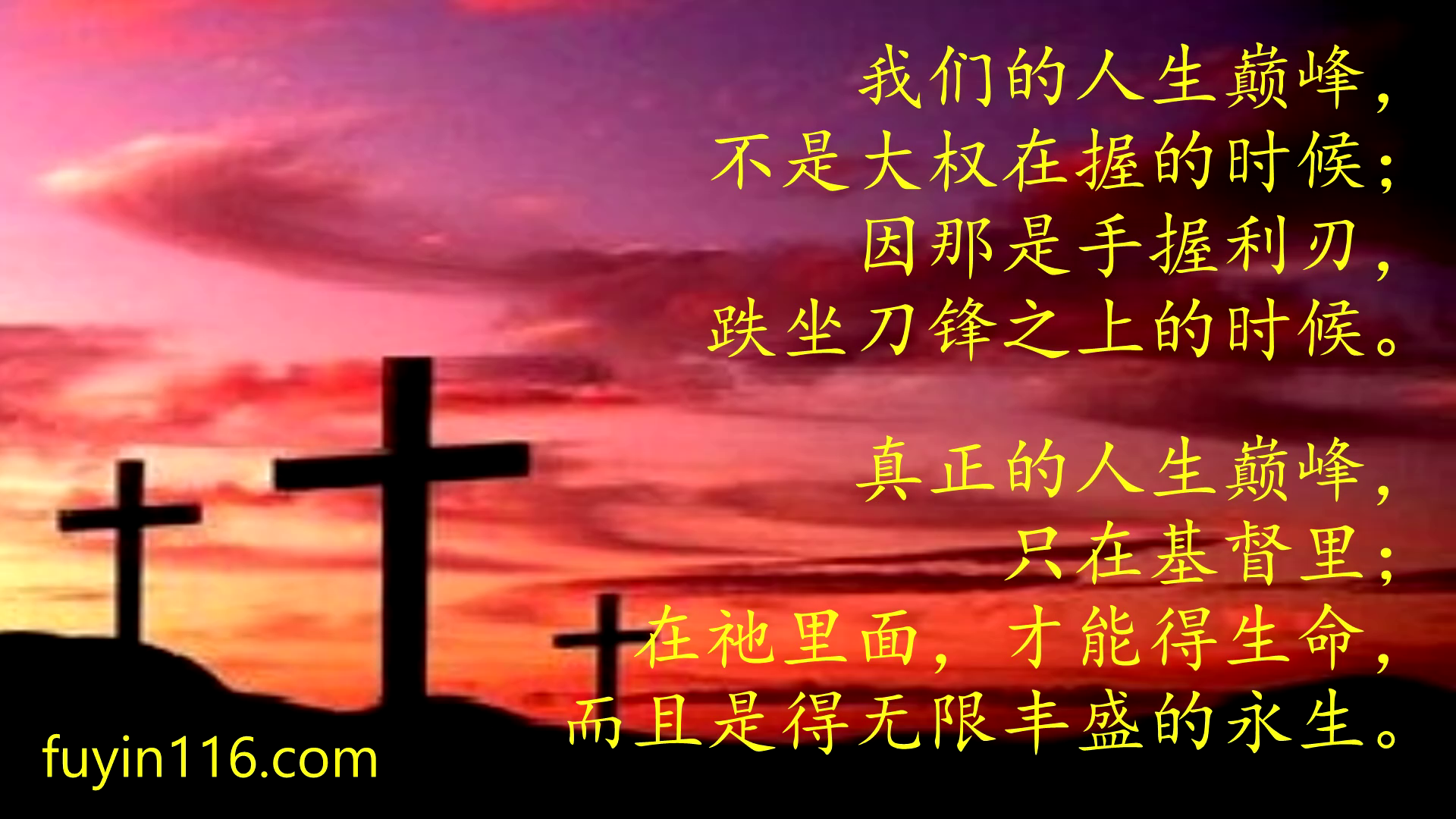 2)请你按照圣灵的感动带领,把我们的这篇信息,发给你身边正在思考“人生的巅峰在哪里”这个重要问题的朋友。