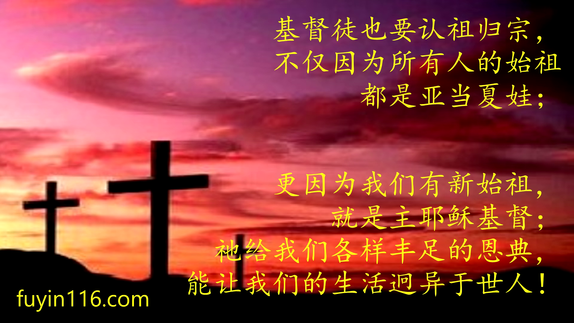 我们每个人都不要“数典忘祖”,特别是基督徒,也是要认祖归宗的,但我们认的“始祖”比一般人都久远,因为我们要认到所有人类的共同祖先——亚当。