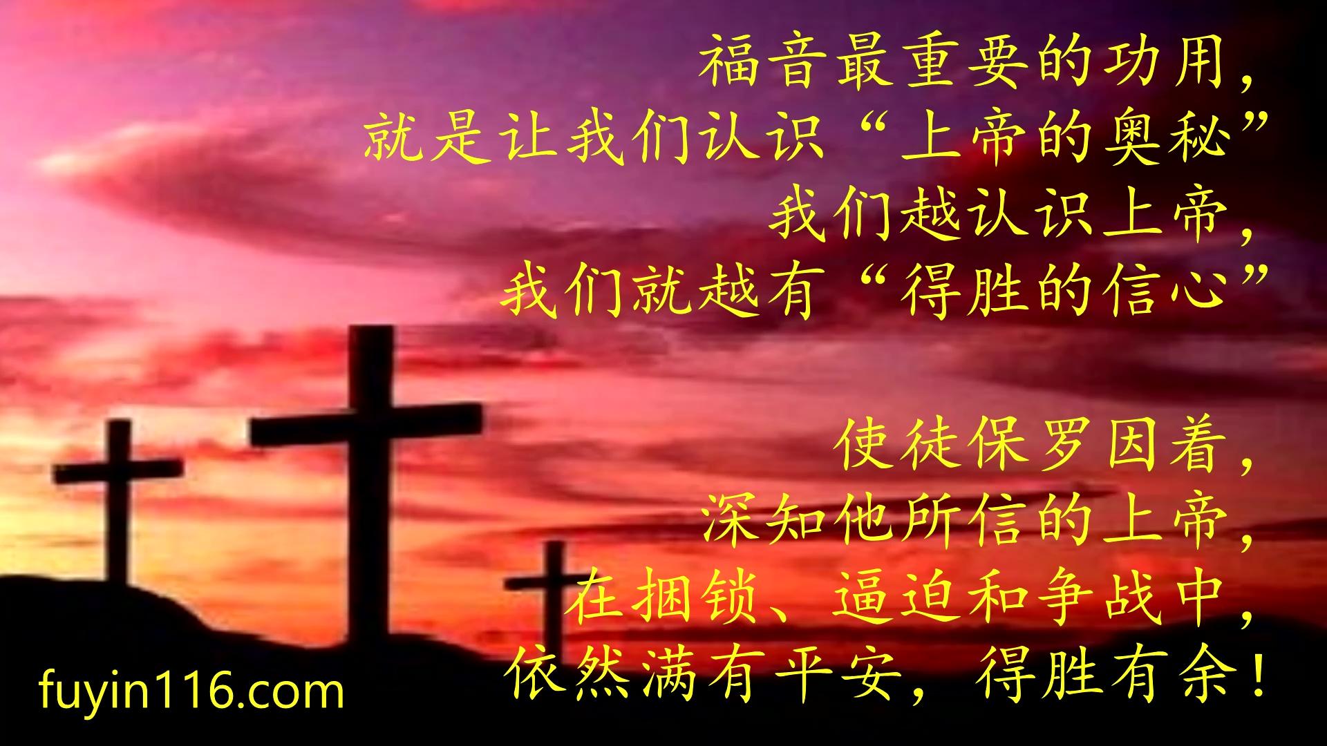 同样道理,我们在福音里面,才能正确的认识我们的上帝。