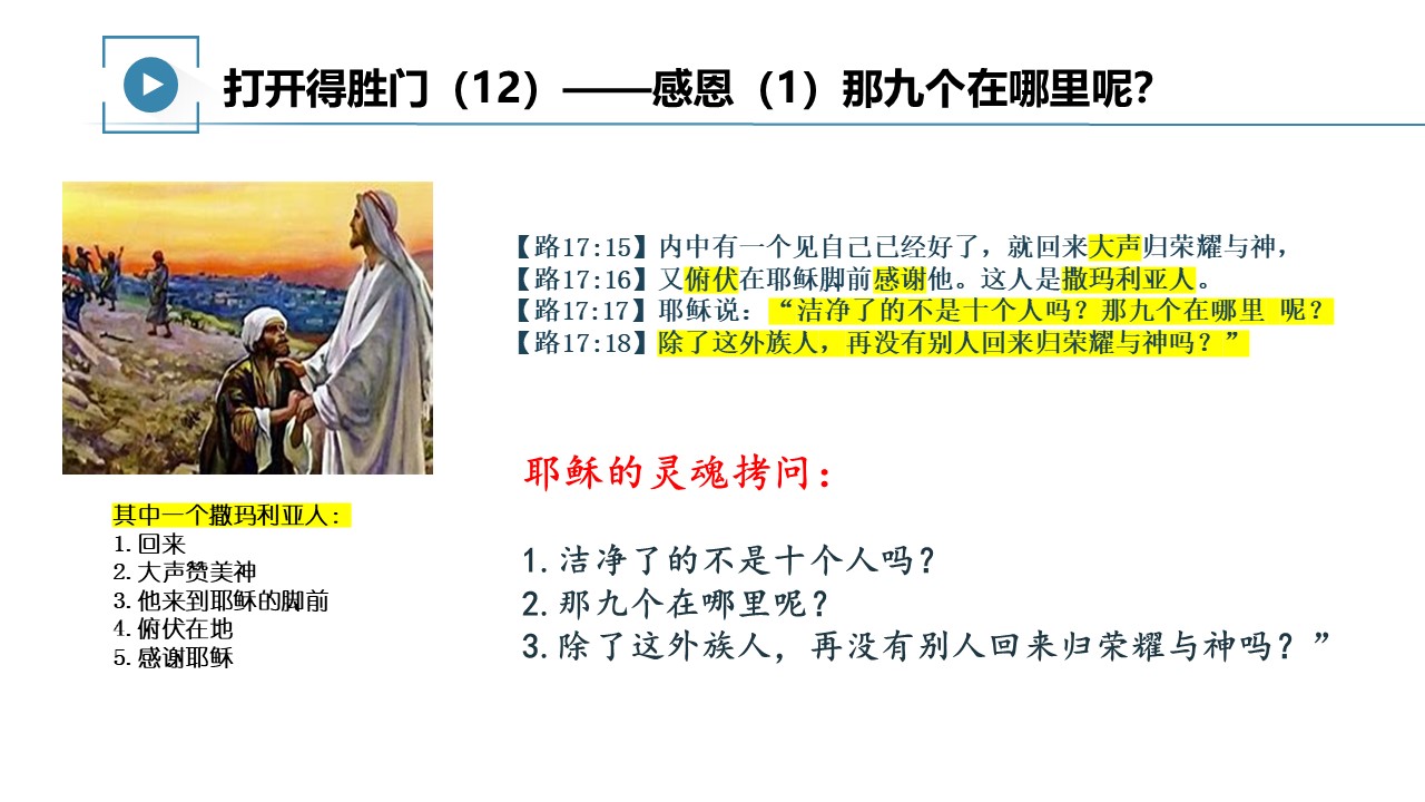 主耶稣曾经医好了十个大麻风病人,其中只有一人回来感恩。