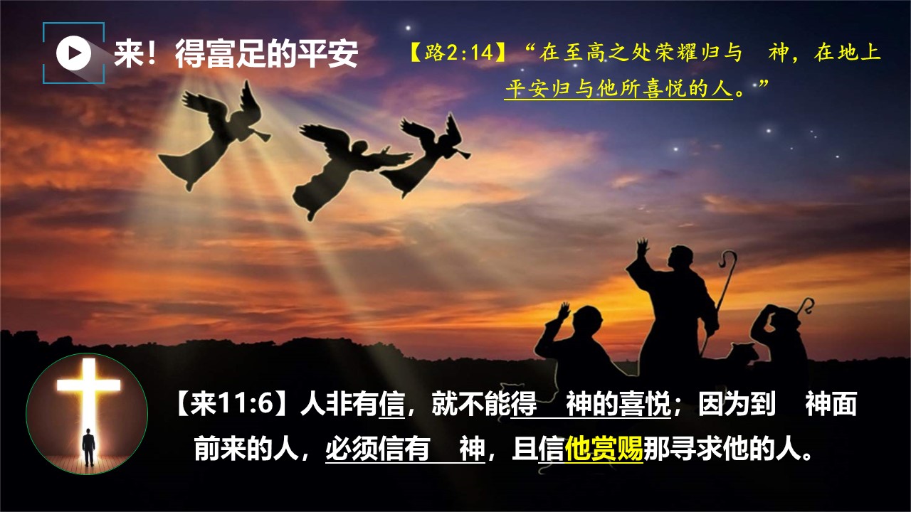 正如我们信息里说的,我们要得到“富足的平安”,就要“信耶稣”,成为“上帝喜悦的人”