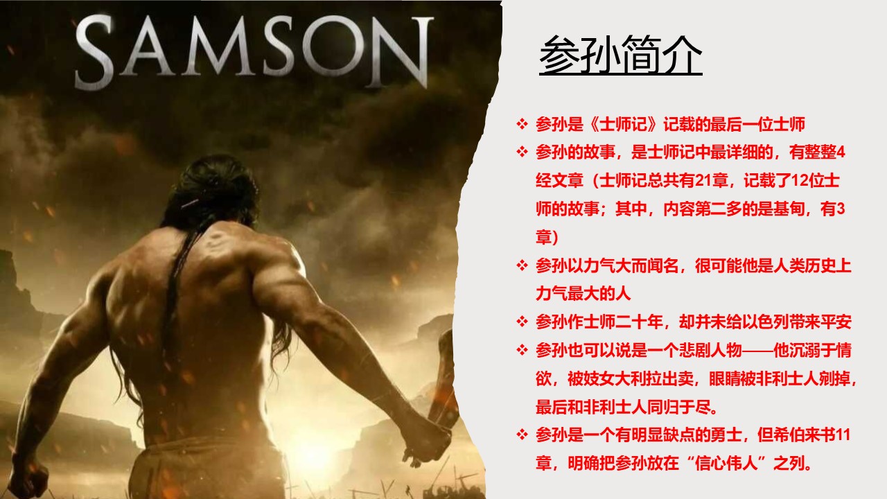 斗士参孙,应该是圣经里力气最大的人,也是让我们唏嘘感慨的勇士,在他身上有哪些宝贵的真理,值得我们深思学习呢?