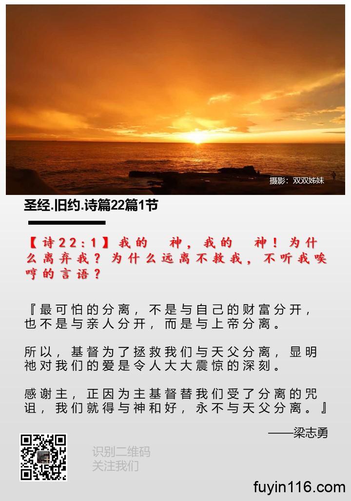 【诗22:1】我的 神,我的 神!为什么离弃我?为什么远离不救我,不听我唉哼的言语?
