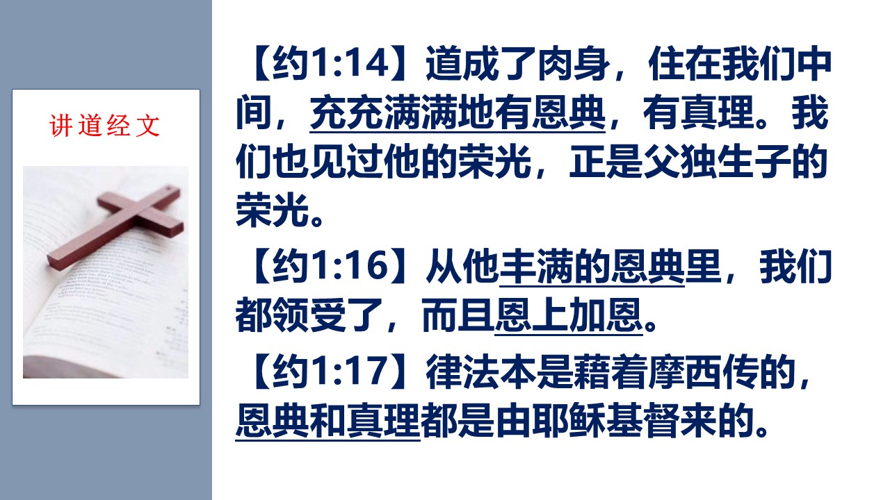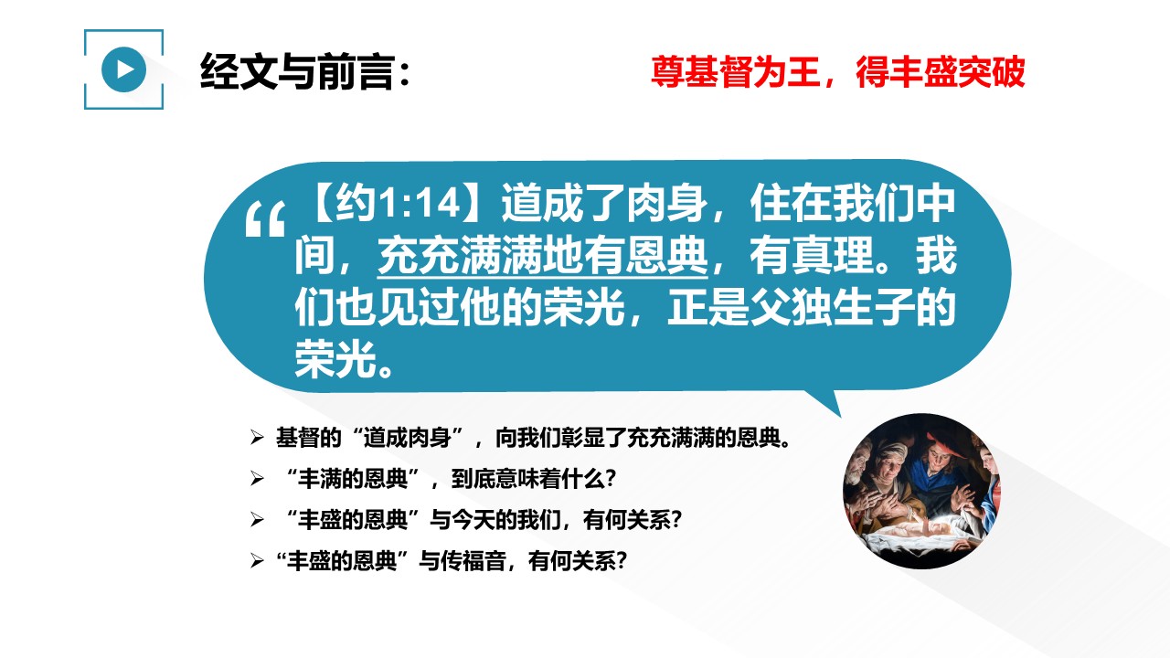 基督的“道成肉身”,向我们彰显了充充满满的恩典。