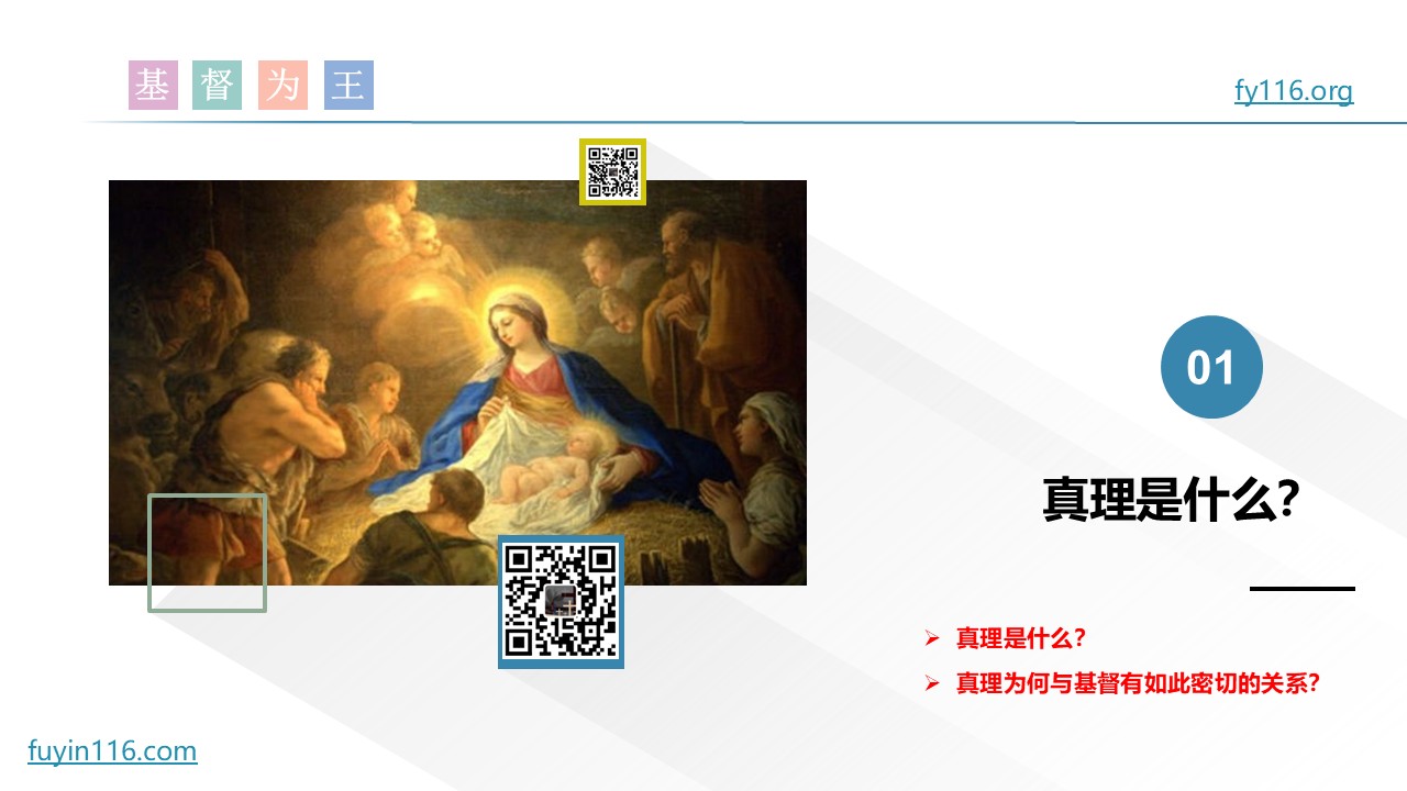 “道成肉身”的基督,称为“充充满满地有恩典,有真理”,主基督的话语里,也多次提及真理。