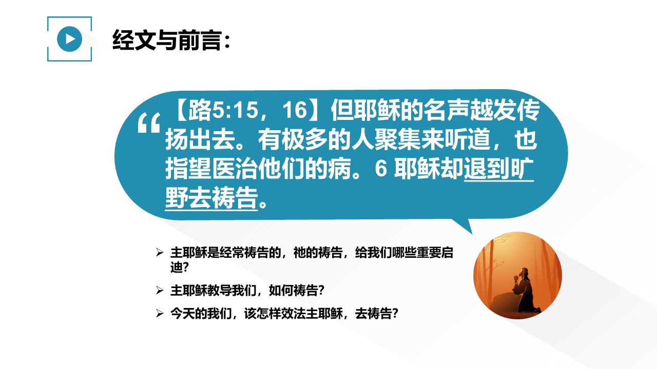 主耶稣是经常祷告的,祂的祷告,给我们哪些重要启迪?