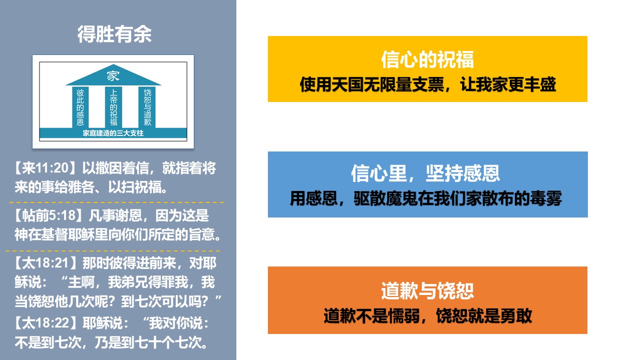 我们在家庭里坚持哪三件事,就必“得胜有余”?