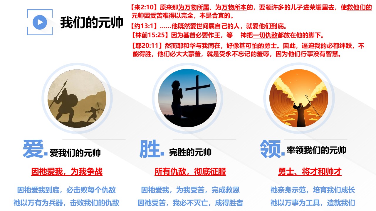 希伯来书2章10节宣告,主基督是我们“救恩的元帅”。