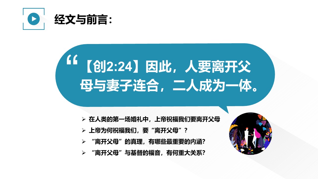 在人类的第一场婚礼中,上帝祝福我们要离开父母