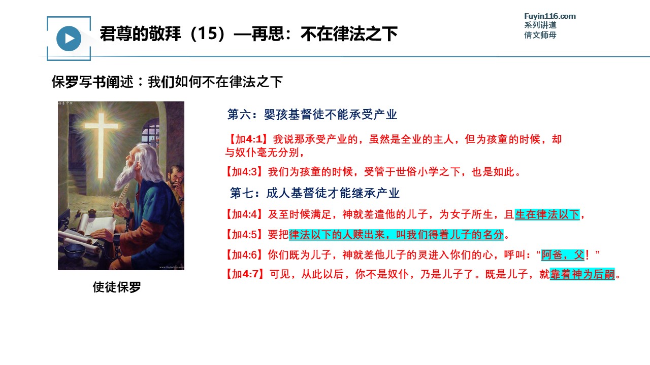 使徒保罗说“你们不在律法之下,乃在恩典之下”。