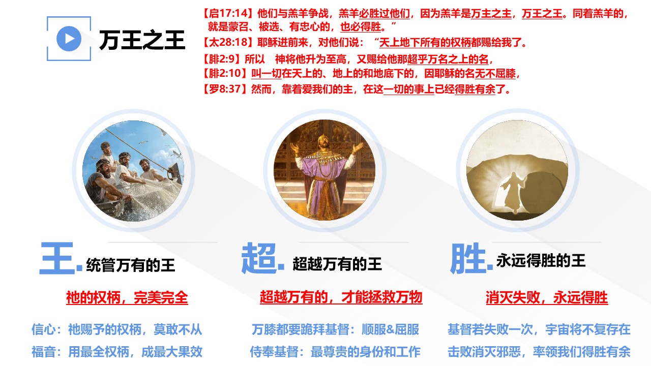 《基督为王》系列的最后一讲,我们分享的主题是《万王之王》
