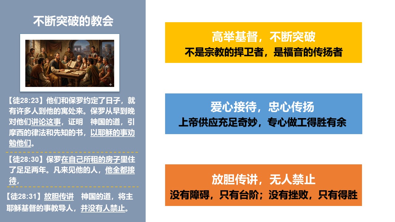 保罗在罗马的经历,给今天的教会,哪些重要的提醒和激励?