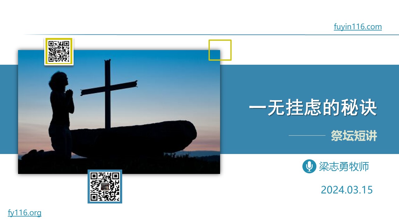 当使徒保罗提醒腓利比的弟兄姊妹,要“一无挂虑”的时候。 这“一无挂虑”的吩咐,是一个压力,还是一个祝福? 保罗告诉我们,我们该如何作,使我们的生活“一无挂虑”呢? 我们可以“一无挂虑”的根源到底是什么? 愿上帝的祝福借着祂的真道,更多地临到每一个认真聆听的灵魂。 欢迎您收听: 《一无挂虑的秘诀》 https://godmsg.me/aqbi ⚠️⚠️⚠️ 注意 ⚠️⚠️⚠️ 因为微信会有较严苛无理的屏蔽做法,所以我们网站的文章,经常会出现在微信里无法正常打开的情况。 遇到这种情况,大家不用慌,只…