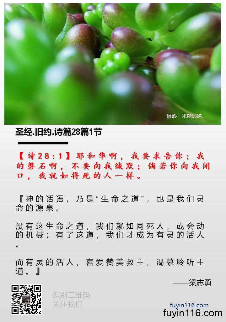 【诗28:1】耶和华啊,我要求告你;我的磐石啊,不要向我缄默;倘若你向我闭口,我就如将死的人一样。 《生命的根基是什么?》 作者:梁志勇牧师 朗诵:徐辉姊妹 【诗28:1】耶和华啊,我要求告你;我的磐石啊,不要向我缄默;倘若你向我闭口,我就如将死的人一样。 『神的话语,乃是“生命之道”,也是我们灵命的源泉。 没有这生命之道,我们就如同死人,或会动的机械;有了这道,我们才成为有灵的活人。 而有灵的活人,喜爱赞美救主,渴慕聆听主道。』 我们在天上的父,感谢赞美你 感谢你把你宝贵的话语赐给我们,让我们可以不…