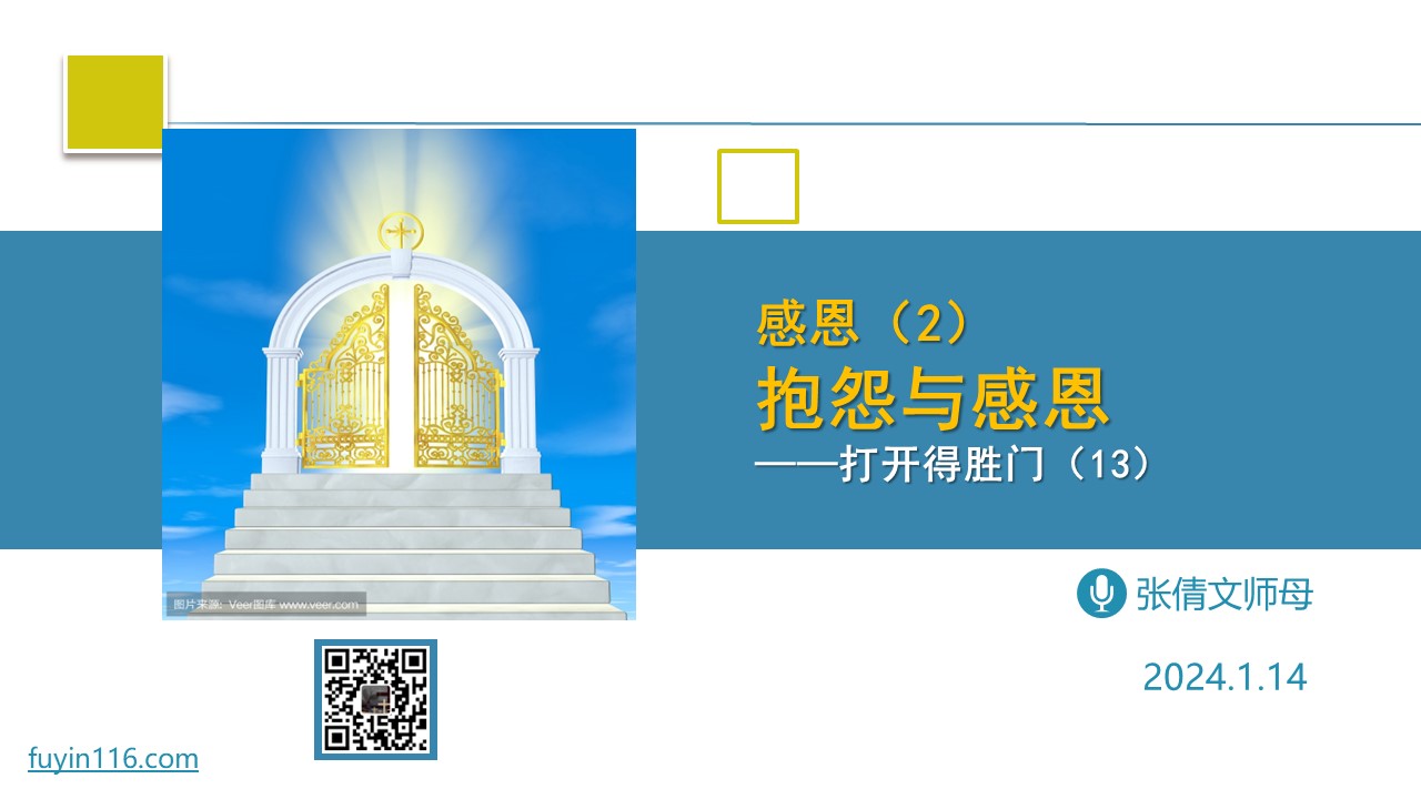 我们为何会感恩? 我们抱怨的根本原因,又是什么? 感恩和抱怨,对我们的生命分别有怎样重大的影响? 愿上帝的祝福借着祂的真道,更多地临到每一个认真聆听的灵魂。 欢迎您跟着我们的文章的提示,参加视频直播或收听录音: 《抱怨与感恩》 https://godmsg.me/81tn 您也可以点击下面的链接,重温之前的信息: 《打开得胜门系列》 点击音频媒体前面的小三角“►”就可以播放 我们的阿爸天父,感谢赞美你 感谢你赐给…