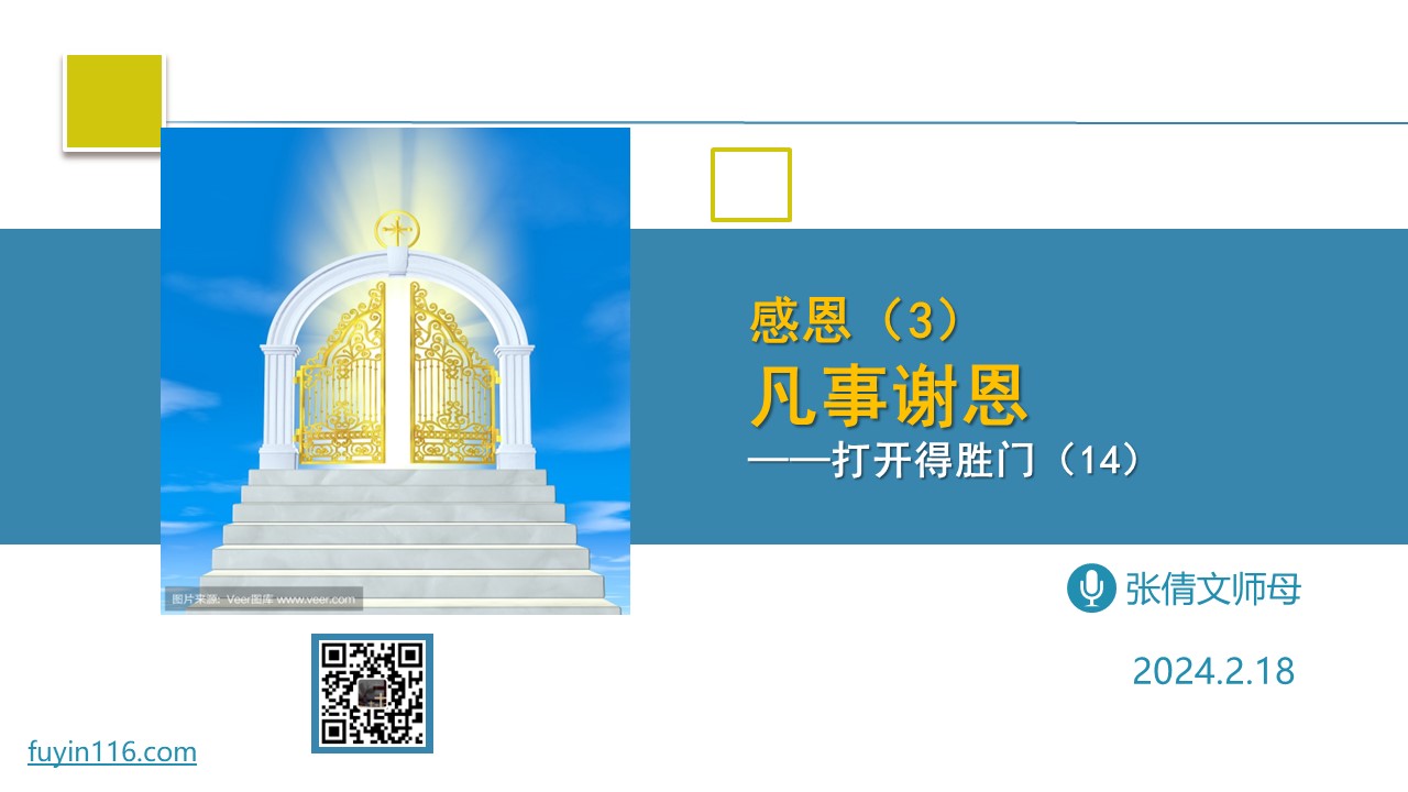 上帝为什么命令我们要“凡事谢恩”? 我们该怎样“凡事谢恩”? “凡事谢恩”与主基督,有怎样的关系? “凡事谢恩”,会带来怎样的果效? 愿上帝的祝福借着祂的真道,更多地临到每一个认真聆听的灵魂。 欢迎您收听: 《凡事谢恩》 https://godmsg.me/4i9q 您也可以点击下面的链接,重温之前的信息: 《打开得胜门系列》 ⚠️⚠️⚠️ 注意 ⚠️⚠️⚠️ 因为微信会有较严苛无理的屏蔽做法,所以我们网站的文章,经常会出现在微信里无法正常打开的情况。 遇到这种情况,大家不用慌,只要在微信对话或…