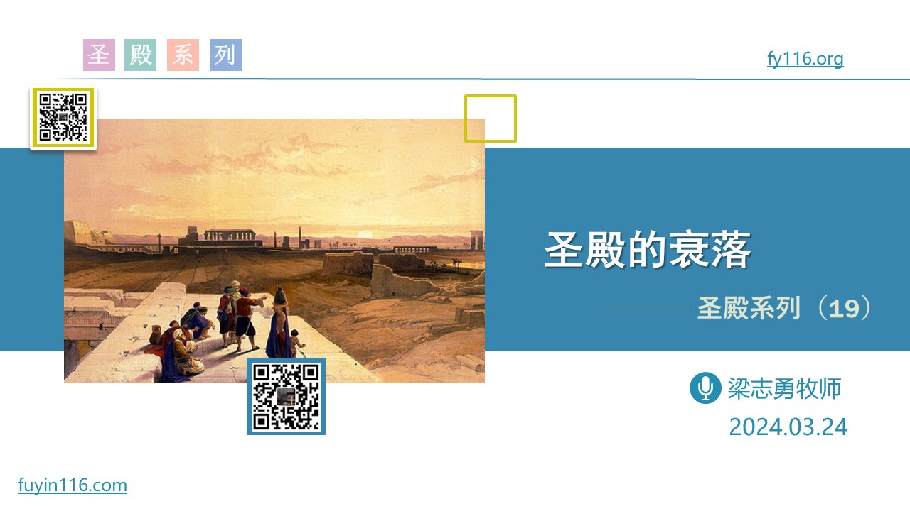 神圣宏伟的圣殿,上帝为何许可它衰落,乃至被彻底拆毁? 圣殿的衰落,向我们揭示了哪些重要的真相? 圣殿的衰落,对今天的教会,启迪了哪些重要的真相?   愿上帝的祝福借着祂的真道,更多地临到每一个认真聆听的灵魂。 欢迎您收听: 《圣殿的衰落》 https://godmsg.me/zxtt 您也可以点击下面的链接,重温之前的信息: 《圣殿系列》 ⚠️⚠️⚠️ 注意 ⚠️⚠️⚠️ 因为微信会有较严苛无理的屏蔽做法,所以我们网站的文章,经常会出现在微信里无法正常打开的情况。 遇到这种情况,大家不用慌,只要在微…