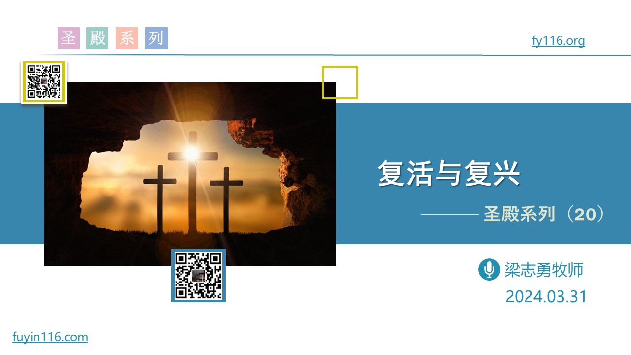 3月31日是一个重要的节日,而且不仅是基督徒的,也是全世界最重要的节日——复活节,我们要分享的主题是: 《复活与复兴》 “基督的复活”这个历史事件,到底有何意义? 基督的复活,与圣殿的重建复兴,有什么关系? 将近两千年前的复活,对今天的我们,有何重要影响?   愿上帝的祝福借着祂的真道,更多地临到每一个认真聆听的灵魂。 欢迎您收听: 《复活与复兴》 https://godmsg.me/aw4q 您也可以点击下面的链接,重温之前的信息: 《圣殿系列》 点击下面链接,推荐收听:《因信称义系列》 第16、…