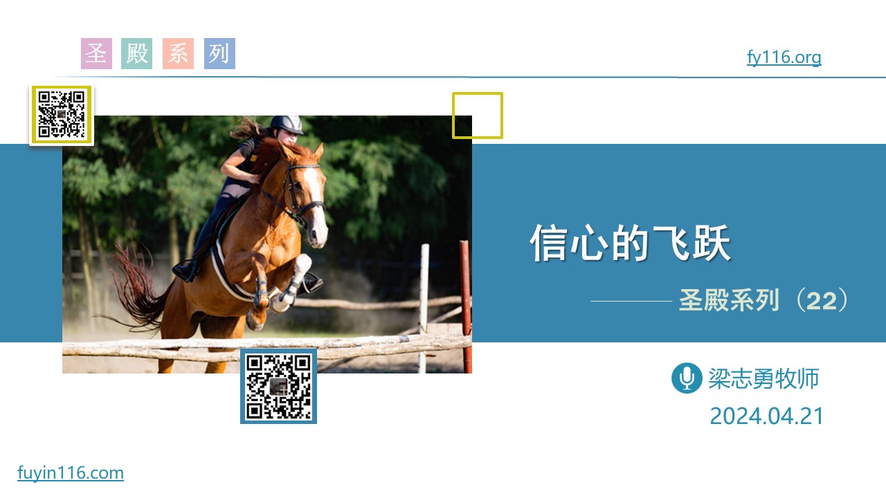 当我们抬头看见《天上的宝座》之后,我们要被天上的异象所激励,更用心建造主的圣殿。 我们要建造主的圣殿,最重要的,到底是什么? 卓越的建殿工人,要有哪三个“信心的飞跃”? 最卓越的信心,要落实在哪里?   愿上帝的祝福借着祂的真道,更多地临到每一个认真聆听的灵魂。 欢迎您收听: 《信心的飞跃》 https://godmsg.me/npa9   您也可以点击下面的链接,重温之前的信息: 《圣殿系列》 特别推荐信息: 争战得地(16)跨过约旦河 祭坛系列(8)基甸的祭坛 以利亚(11)门徒三站 …