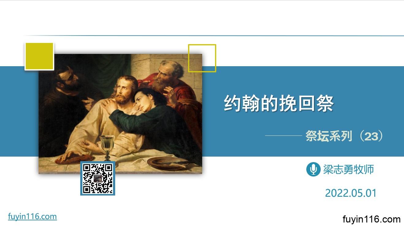 在5月1日,我们继续《祭坛系列》的尾声,我们这次要分享《约翰的挽回祭》。 让我们看看这位《新约圣经》重要的使徒,他的生命、他的工作,和“挽回祭”之间有什么关系: “挽回祭”是什么意思?为什么只有在新约中出现这种说法? “挽回祭”对约翰的生命有什么重要影响? “挽回祭”与约翰的工作,又有什么关系? “挽回祭”对今天的我们,又有什么重大影响? 点击音频媒体前面的小三角“►”就可以播放      我们的阿爸天父,感谢赞美你 感谢你赐给我们《圣经》真理,让我们认识“祭坛”与我们信仰的关系。 我们更感谢你…