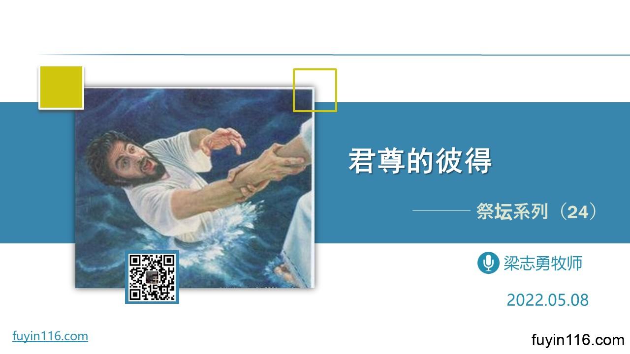 在5月8日,我们继续《祭坛系列》的尾声,我们这次要分享《君尊的彼得》。 让我们看看彼得这位《新约圣经》重要的使徒,他的人生给我们有哪些重要的启迪: 彼得为何可以从普通的渔夫,变成“君尊的祭司”? 彼得的一生,给我们哪些重要启迪? 彼得的劝勉,对今天的基督徒,有何重要的意义?     点击音频媒体前面的小三角“►”就可以播放:     我们的阿爸天父,感谢赞美你 感谢你赐给我们《圣经》真理,让我们认识“祭坛”与我们信仰的关系。 我们更感谢你,赐给我们主基督;因为若没有主基督,我…