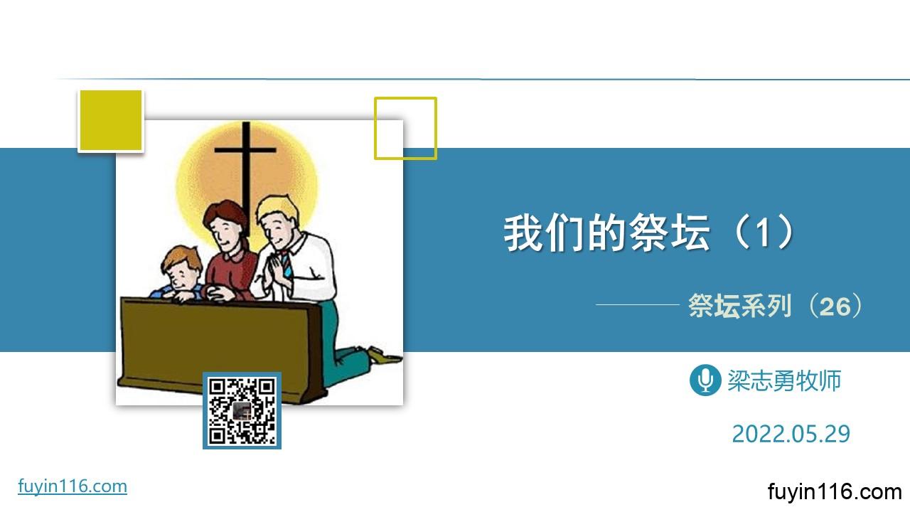 在5月29日,我们继续《祭坛系列》的尾声,我们这次要分享的主题是:   《我们的祭坛》。   当我们回顾《祭坛系列》的分享,当我们纵观《圣经》,我们会发现,耶和华的祭坛对人类历史的影响,是极其重要,无可替代的。 当我们再回顾人类历史,我们可以毫不夸张地讲,世界上真正最伟大的事情,都与上帝的祭坛有密切关系。我们看到耶和华的祭坛,对人类历史有着极其重要的影响,这是毋庸置疑的。让我们再去深刻思考: 这些伟大的祭坛,与今天的我们,有什么关系? “我们的祭坛”应该怎样建立起来? 今天,我们应该做些什么? …