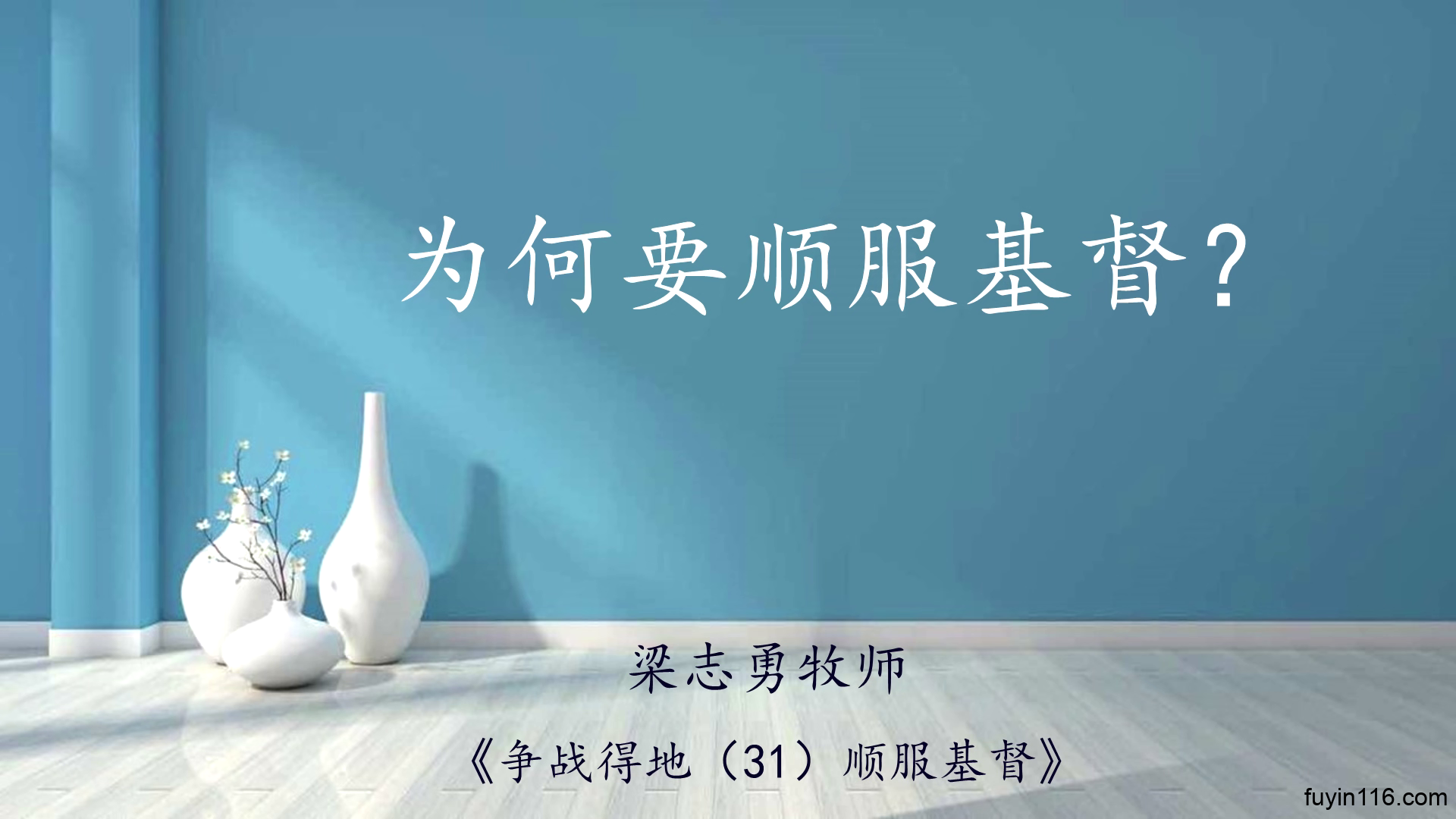 顺服基督的第一因, 是因主对我们的爱; 因此,祂深愿我们, 总是住在祂的爱里。   当我们顺服基督, 就住在祂的艾莉,刚强有力; 当我们不顺服基祂, 就离开祂的爱,软弱无力。 ——梁志勇《争战得地(31)顺服基督》 我们相信,你看到我们这篇讲道剪辑《为何要顺服基督》,绝不是偶然,而是上帝精心安排的结果。 在看到我们这篇文章之前,也许你常常感到很深的无力感,对人生的方向也常常感到迷茫。 上帝知道你的苦境,所以要用这篇文章来搭救你。 你虽然不认识上帝,但祂却顾念你,要帮助你成为一个“真正强有力的…