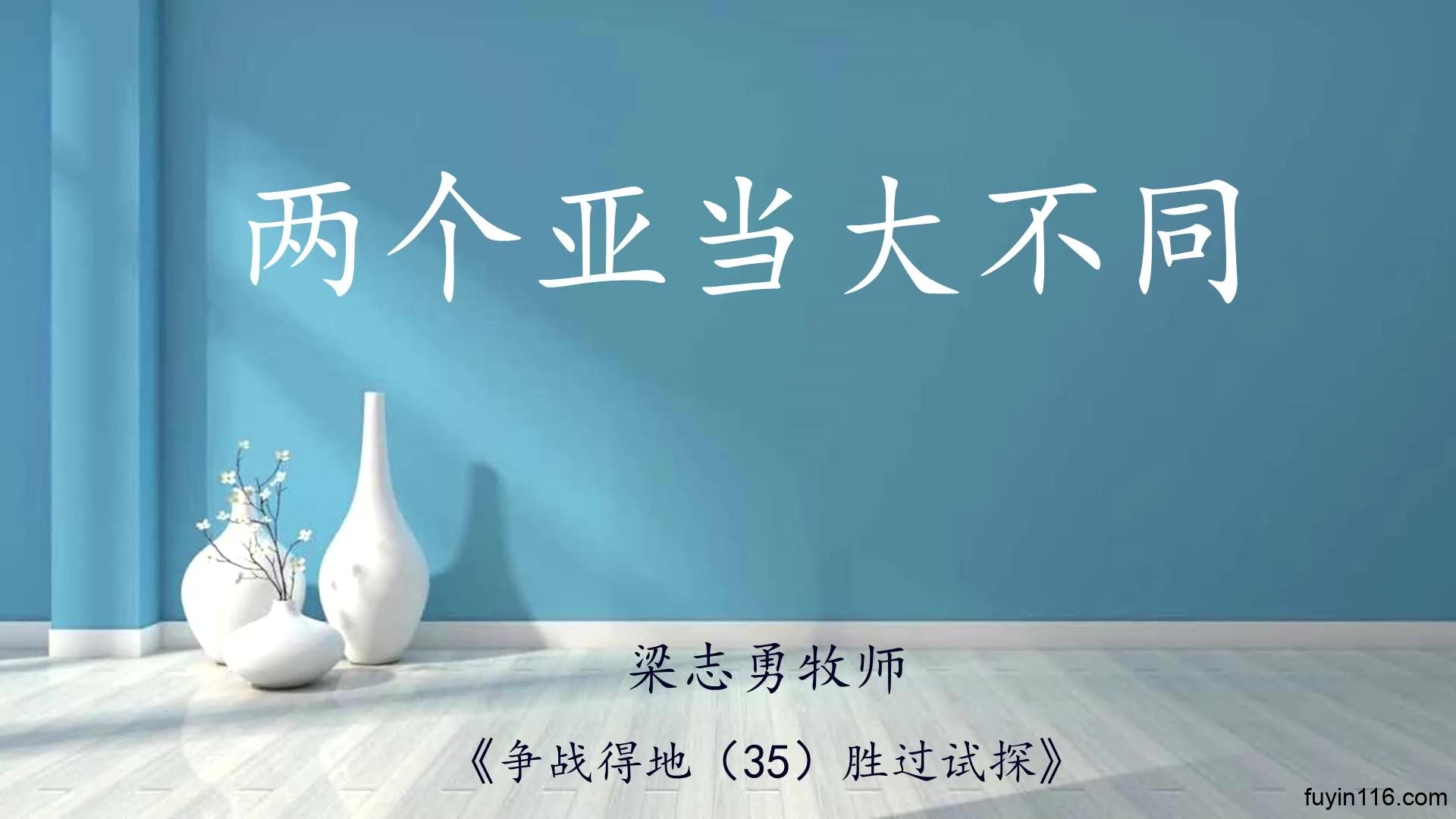 首先的亚当, 在魔鬼的试探中失败。 他带给我们, 罪恶、死亡和魔鬼的篡权。   末后的亚当,就是基督, 祂胜过魔鬼的一切试探; 从祂哪里,我们得到, 永恒的称义、无尽的恩典 和永不堕落的永生。 ——梁志勇《争战得地(35)得胜试探》 我们相信,你看到我们这篇讲道剪辑《两个亚当大不同》,绝不是偶然,而是上帝精心安排的结果。 在看到我们这篇文章之前,也许你对这个世界的败坏和堕落,深深困惑,也十分无奈。 上帝知道你的苦恼,所以要用这篇文章来搭救你。 你虽然不认识上帝,但祂却顾念你,要帮助你成为一个…
