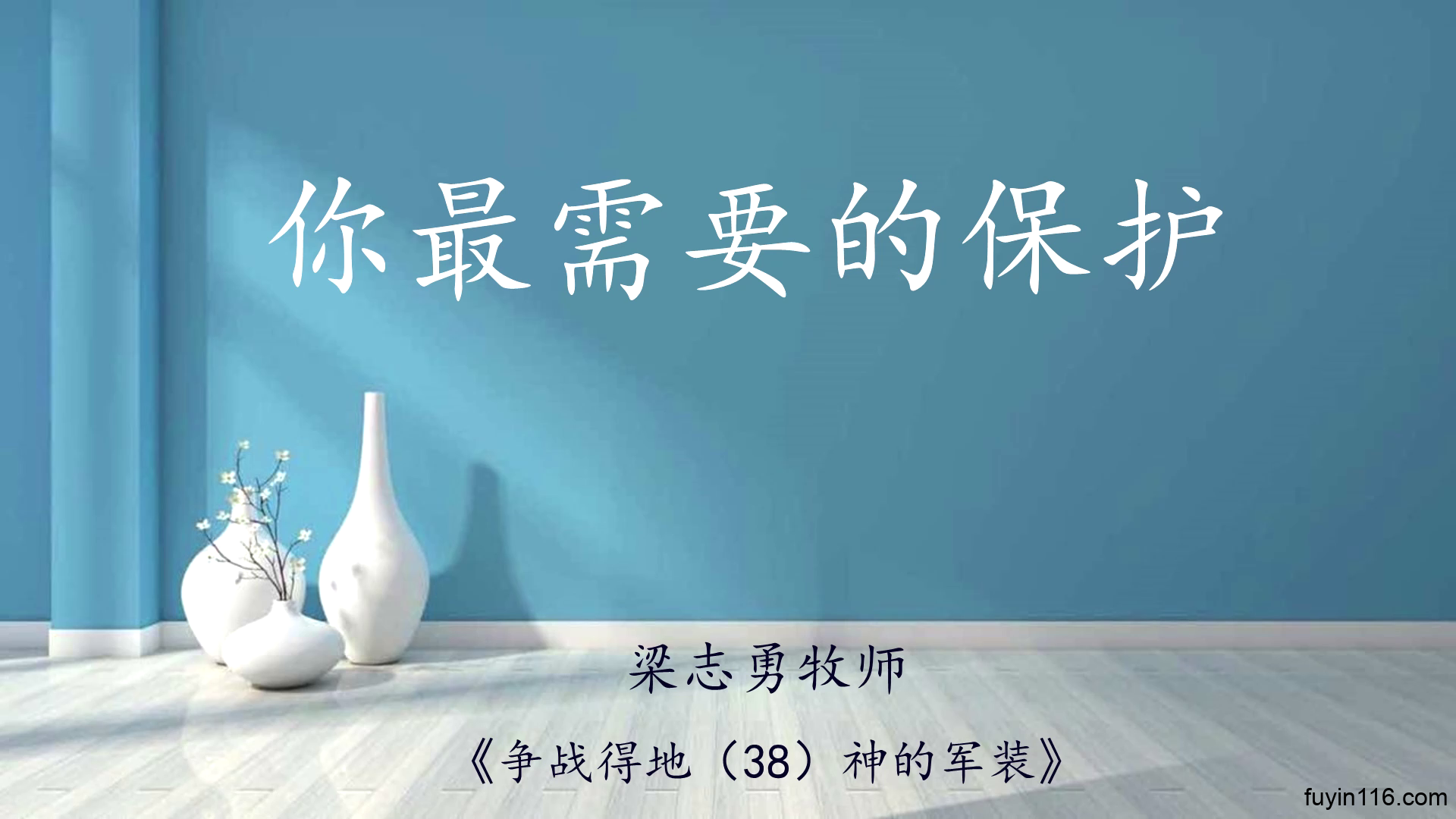 我们最需要的保护, 就是上帝的保护。 因我们都身处属灵争战中。   拒绝上帝的保护, 我们顶多如同扫罗王, 争战一生,却身死敌手。   接受上帝的保护, 我们便如大卫王, 在一切仇敌面前,享受得胜的丰宴。   ——梁志勇《争战得地(38)神的军装》 我们相信,你看到我们这篇讲道剪辑《你最需要的保护》,绝不是偶然,而是上帝精心安排的结果。 在看到我们这篇文章之前,也许你常常不自觉地感受到,你的灵魂需要保护,却不知道为何,以及应该让谁来保护你的灵魂。 你虽然现在还不认识上帝,…