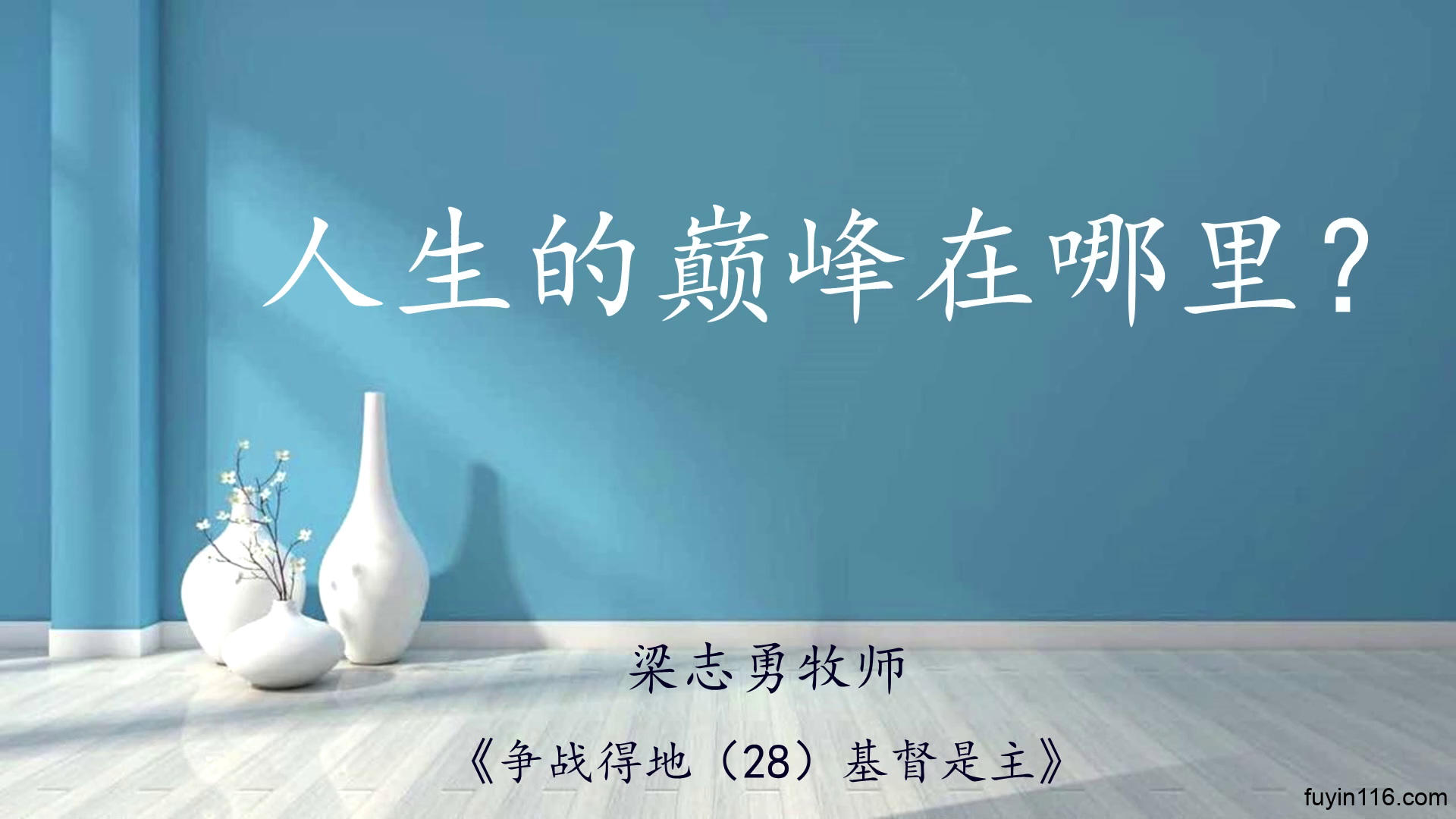 我们的人生巅峰 不是大权在握的时候; 因那是手握利刃, 跌坐刀锋之上的时候。 真正的人生巅峰, 只在基督里; 在他里面,才能得生命, 而且是得无线丰盛的永生。 ——梁志勇《争战得地(28)基督是主》 我们相信,你看到我们这篇讲道剪辑《人生巅峰在哪里?》,绝不是偶然,而是上帝精心安排的结果。 因为上帝知道你对“人生的真相”正在苦苦追求,祂决意给你看到真相。 而且上帝愿意来引导你、帮助你,使你走上真正的“人生巅峰”,且是“永不坠落”的人生巅峰。 你虽然不认识上帝,但祂却顾念你,不愿意你陷入人…
