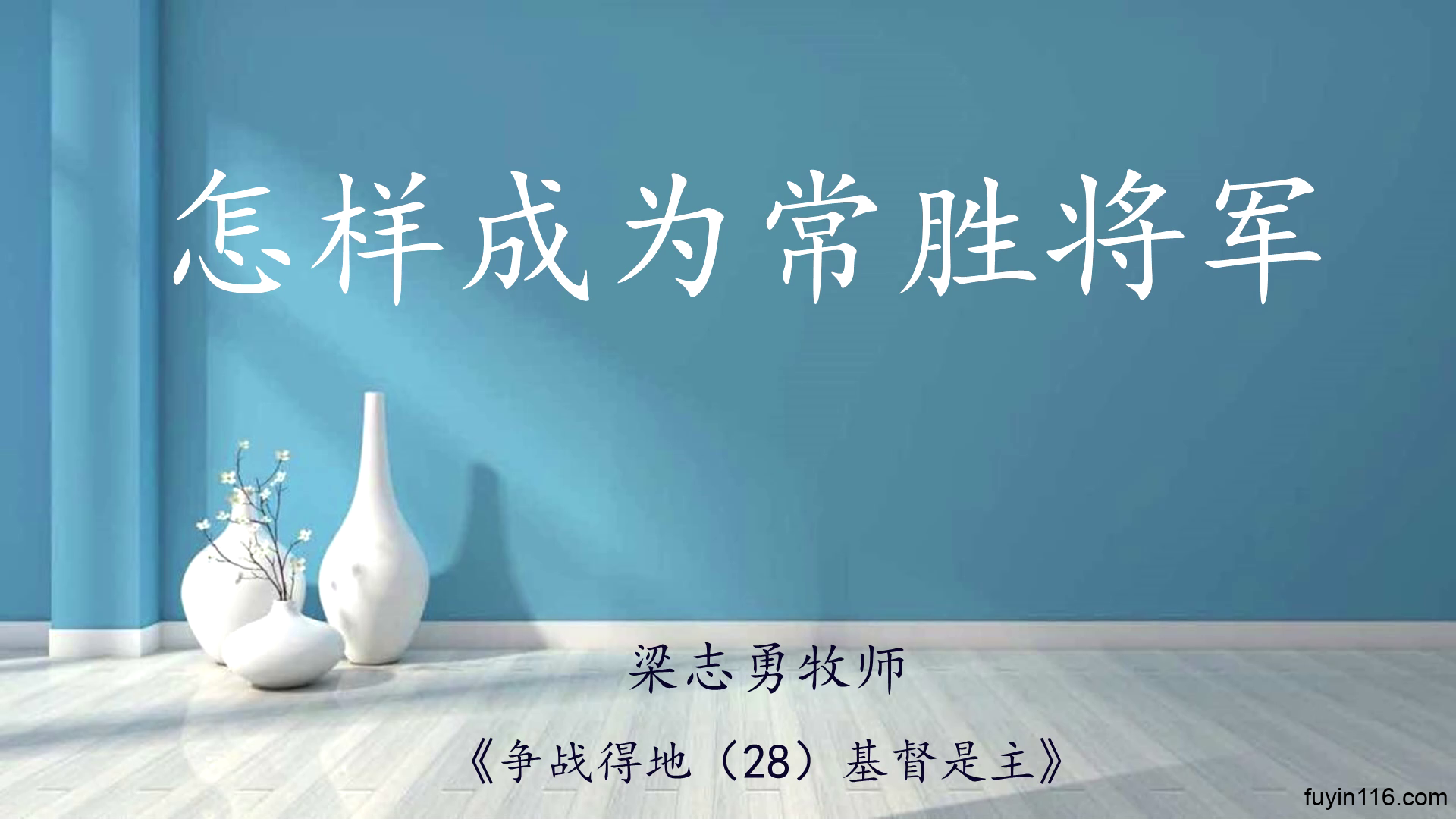自我做王, 让胜利遥不可及。 让基督作主, “我”作基督的仆人 这就是我们成为, “常胜将军”的秘诀! ——梁志勇《基督是主》 我们相信,你看到我们这篇讲道剪辑《怎样成为“常胜将军”?》,绝不是偶然,而是上帝精心安排的结果。 因为上帝知道你渴望做一个真正得胜的人,祂喜悦你的追求,祂也知道你面临的困境,所以借着这篇信息来指引你。 上帝要指引你,让你“成为常胜将军”,从此有一个不断得胜的人生,美得无比。 你虽然不认识上帝,但祂却顾念你,让你“成为真正的人生赢家” 当你诚心实意地…
