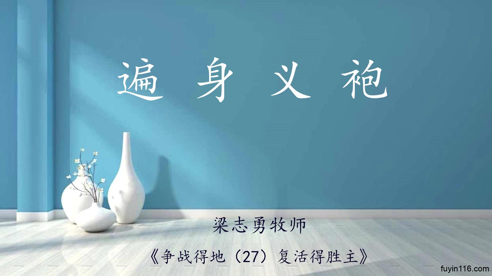 基督的死里复活 宣告了 我们赦罪称义的完全。 祂给我们披上义袍, 从头到脚,全无遗漏; 能胜过魔鬼控告的, 不是我们残缺的道德表现; 而是主基督无瑕疵的义袍! ——梁志勇《争战得地(27)复活得胜主》 我们相信,你看到我们这篇讲道剪辑《遍身义袍》,绝不是偶然,而是上帝精心安排的结果。 在看到我们这篇文章之前,也许你正被罪疚感牢牢抓住,无法解脱,痛苦不堪。 上帝知道你的苦境,所以要用这篇文章来搭救你。 你虽然不认识上帝,但祂却顾念你,不愿意你陷入到这种罪疚感的控告里,或者用错误的“麻木自己…