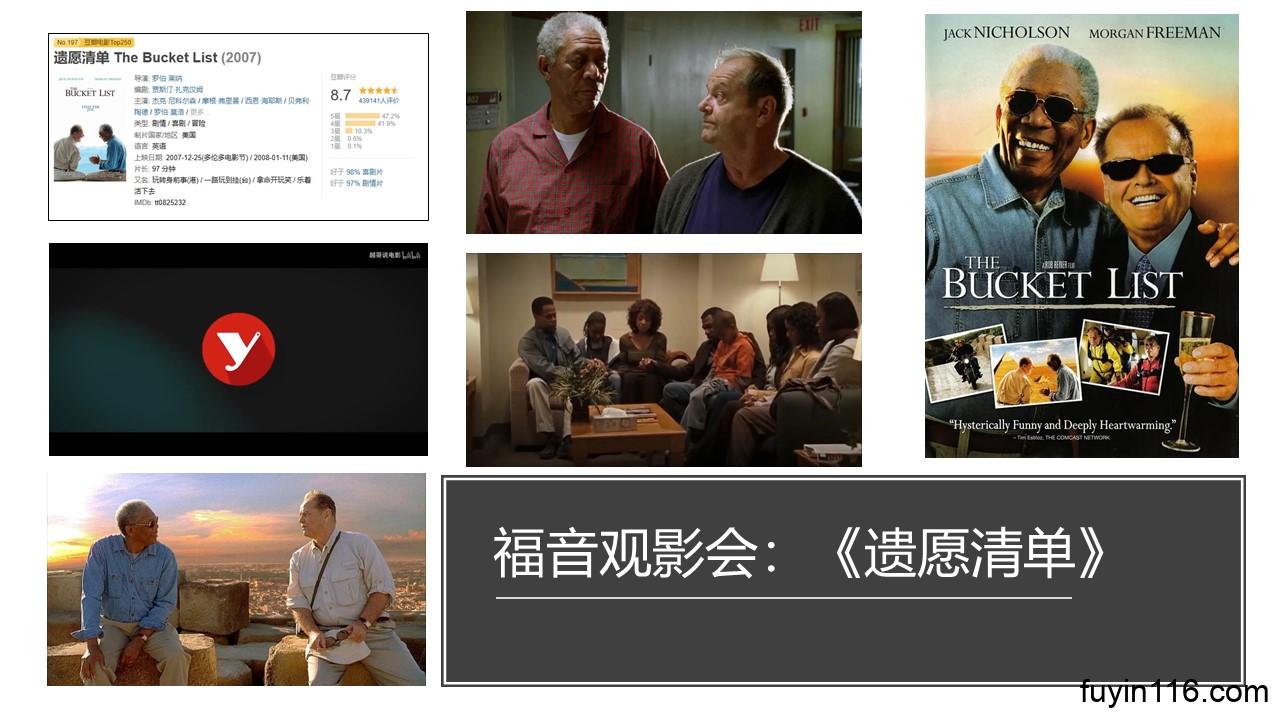 一部好的电影,总能给人很多启发。 当我们戴上“福音的眼镜”去看这些佳片的时候,我们得到的启迪更是十分丰富。 而且当我们越是深思这些佳片,我们越是发现“福音,对每个人都是那么宝贵” 今天,让我们戴上“福音的眼镜”,看看《遗愿清单》这部电影,给我们哪些重要的启迪,帮助我们更认识福音的宝贵: 请先看一段影片简介,我们使用“越哥说电影”里的精辟评论,越哥的解说,本身就给我们很多启发: 再请看我们的“看电影,思福音”的影评,相信会给你更加不一样的领悟: 在我们的“生命的清单”上,应该列下什么呢? “死亡的真…